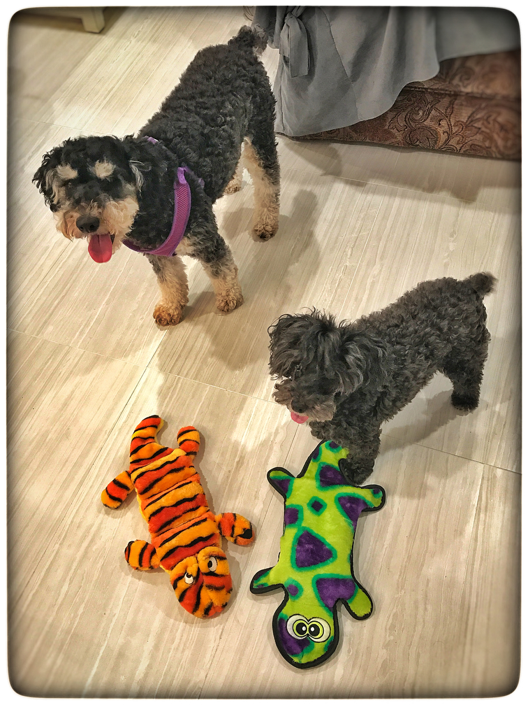 I can't believe the first time I went to see Teddy, JoJo & Tater I didn't bring any gifts. Of course I had to fix that for my next visit. A quick trip to Home Goods & Trader Joe's was all I needed. Everybody loved the squeaky toys, treats & poop bags!